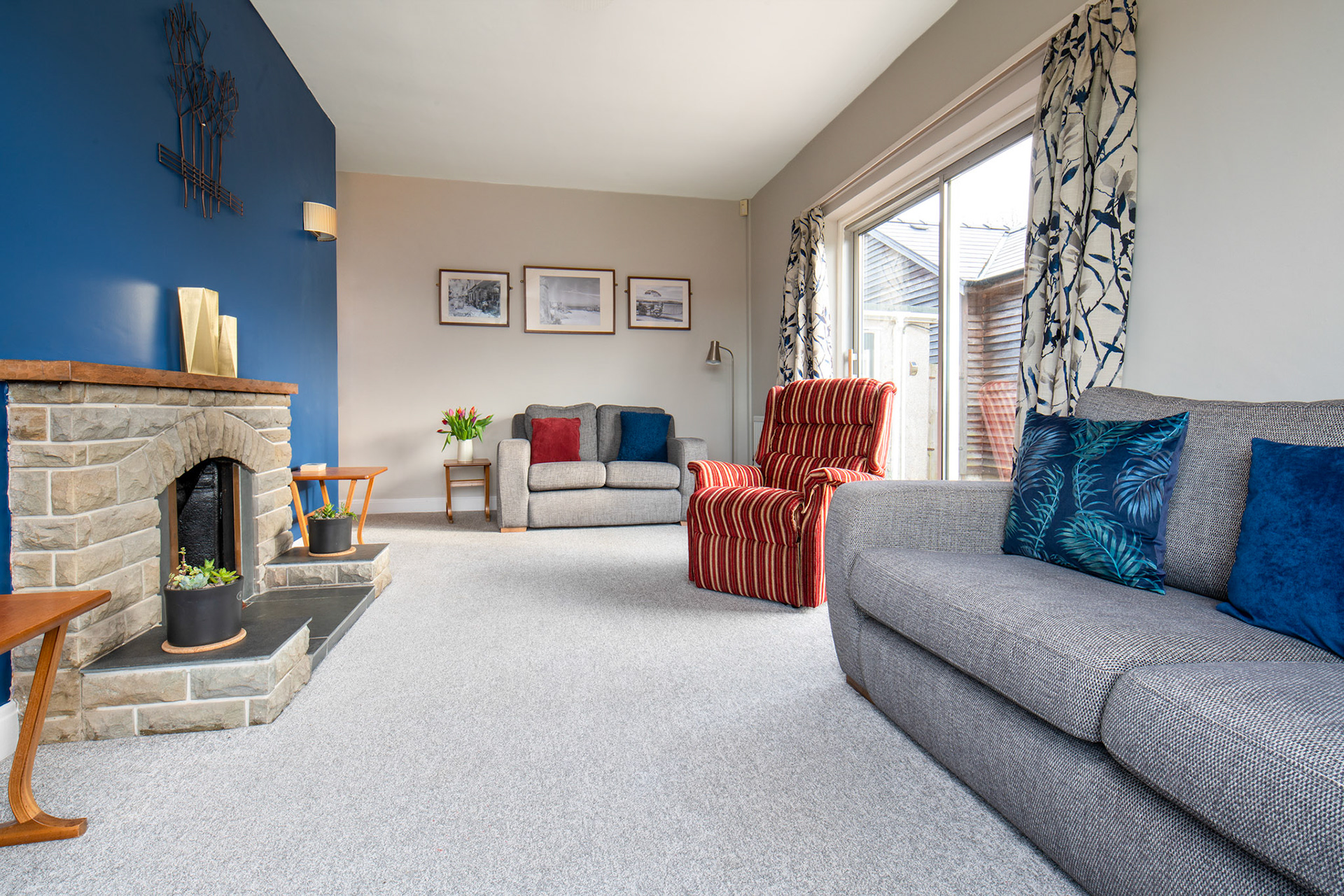 Spacious lounge with smart tv, dvd player and extensive collection of DVDs. Far reaching views over nearby hills and surrounding fields.